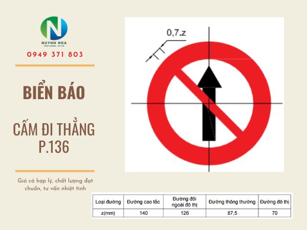 Biển báo cấm đi thẳng, có mã hiệu P.136, là một trong những biển báo quan trọng trong hệ thống giao thông. Biển này có hình dạng tròn với viền đỏ và nền trắng, chỉ rõ rằng mọi loại xe, bao gồm cả những xe ưu tiên, không được phép đi thẳng qua vị trí đặt biển. Điều này có nghĩa là người lái xe phải rẽ hoặc quay đầu theo hướng được phép.