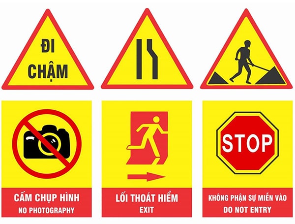 Màu sắc cũng là một yếu tố tạo nên sự nổi bật của biển báo nguy hiểm. Nền biển thường có màu vàng, viền đỏ, giúp người lái xe dễ dàng nhận diện từ xa. Ở giữa hình tam giác là hình vẽ màu đen, mô tả rõ ràng tình huống nguy hiểm mà người tham gia giao thông có thể gặp phải.