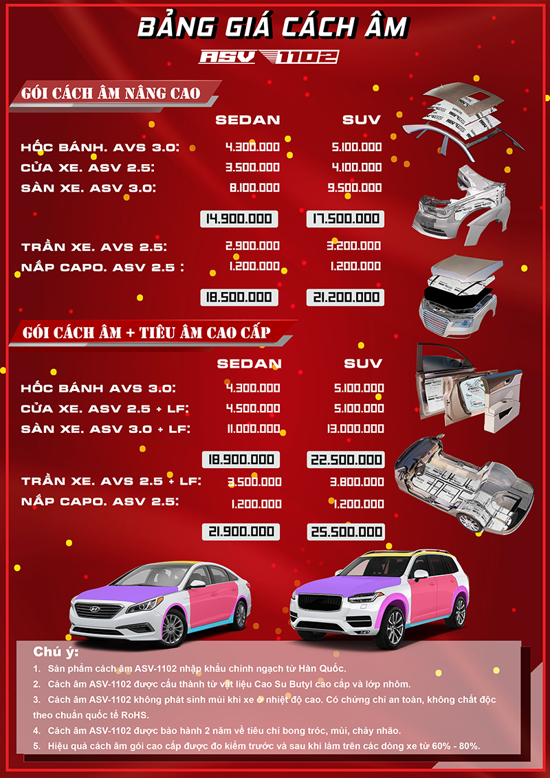 Bên cạnh đó, dịch vụ cách âm còn có bảo hành, giúp bạn yên tâm hơn khi sử dụng. Giá dán cho từng vị trí như cánh cửa, trần hay hốc bánh xe cũng rất đa dạng, từ 3 triệu đến 10 triệu đồng. Nếu bạn muốn biết thêm chi tiết, hãy gọi ngay để được tư vấn.
