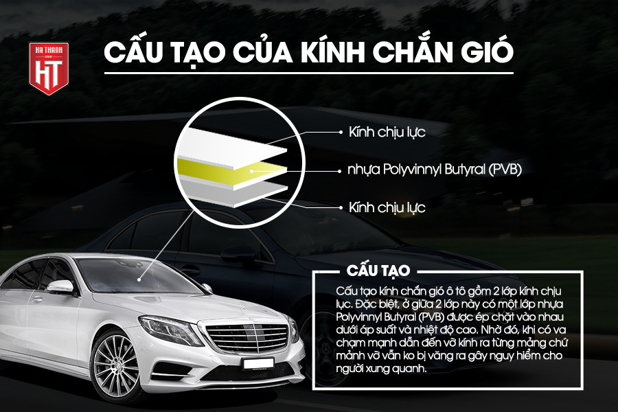 Kính chắn gió ô tô là một trong những thành phần quan trọng nhất, không chỉ bảo vệ người lái khỏi gió bụi mà còn đảm bảo an toàn khi lái xe. Hiện nay, kính chắn gió chủ yếu có hai loại: kính nhiều lớp (laminated) và kính cường lực. Trong số đó, kính nhiều lớp thường được ưa chuộng hơn. Kính này cấu tạo từ hai lớp kính và một lớp keo ở giữa, giúp ngăn chặn tình trạng vỡ vụn khi bị va chạm.