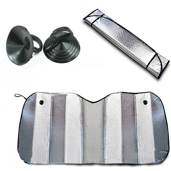 Tấm che nắng phủ ngoài kính lái là một lựa chọn thông minh, vì chúng nhẹ, dễ tháo lắp và di chuyển. Bên cạnh đó, sản phẩm này thường có lớp bạc cách nhiệt giúp chống tia cực tím, góp phần bảo vệ nội thất xe khỏi nắng nóng. Tấm chắn xốp cũng là một sự lựa chọn phổ biến nhờ giá thành rẻ và dễ tìm. Với thiết kế lớp ngoài tráng nhôm để phản xạ ánh sáng, chúng cũng mang lại hiệu quả chắn nắng nhất định.