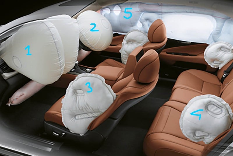 Túi khí được lắp đặt kín đáo ở nhiều vị trí trong khoang xe, như bên hông, phía trước và trên rèm cửa. Cụ thể, túi khí sẽ bao gồm túi khí hông, túi khí rèm và túi khí kết hợp, giúp bảo vệ cơ thể người ngồi bằng cách giảm lực tác động lên đầu và ngực.